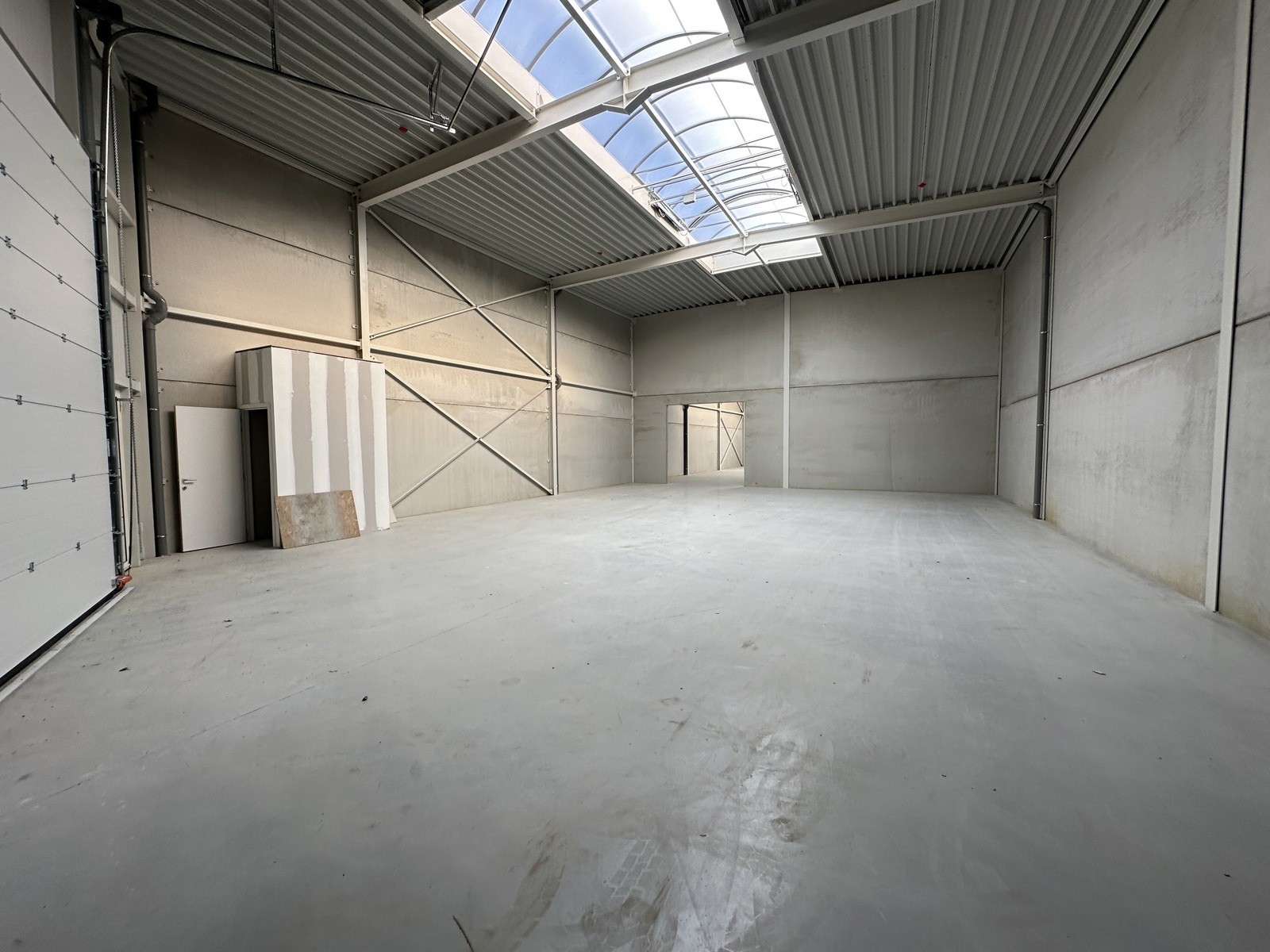 De hal heeft een hoogte van 7 meter en beschikt over een sectionale poort van 4,5 meter hoogte. Alle voorzieningen zijn aanwezig zoals een toiletruimte, elektriciteit, drijfkracht, ...