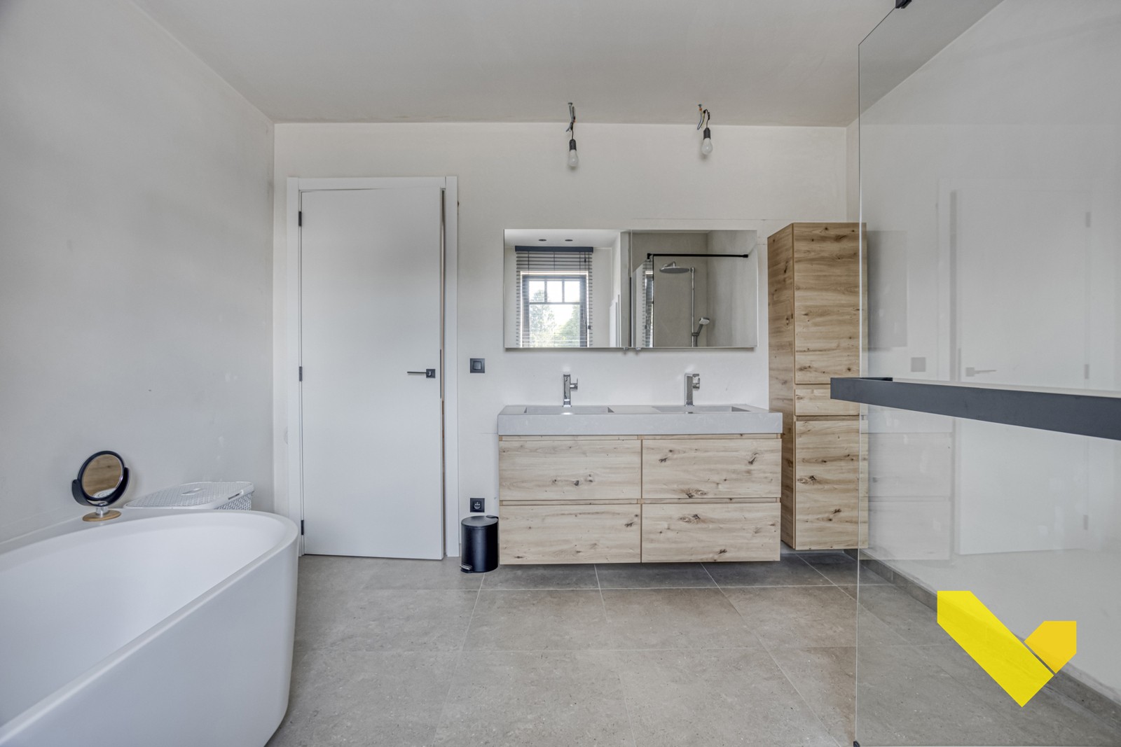 o 1ste badkamer met ruim ligbad, inloopdouche en dubbele lavabo