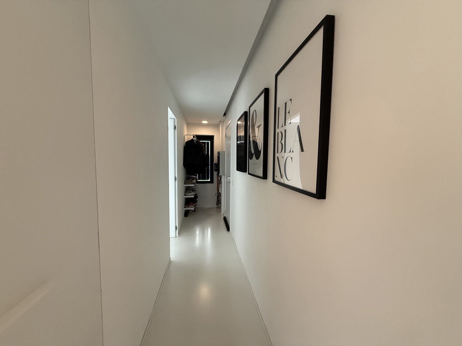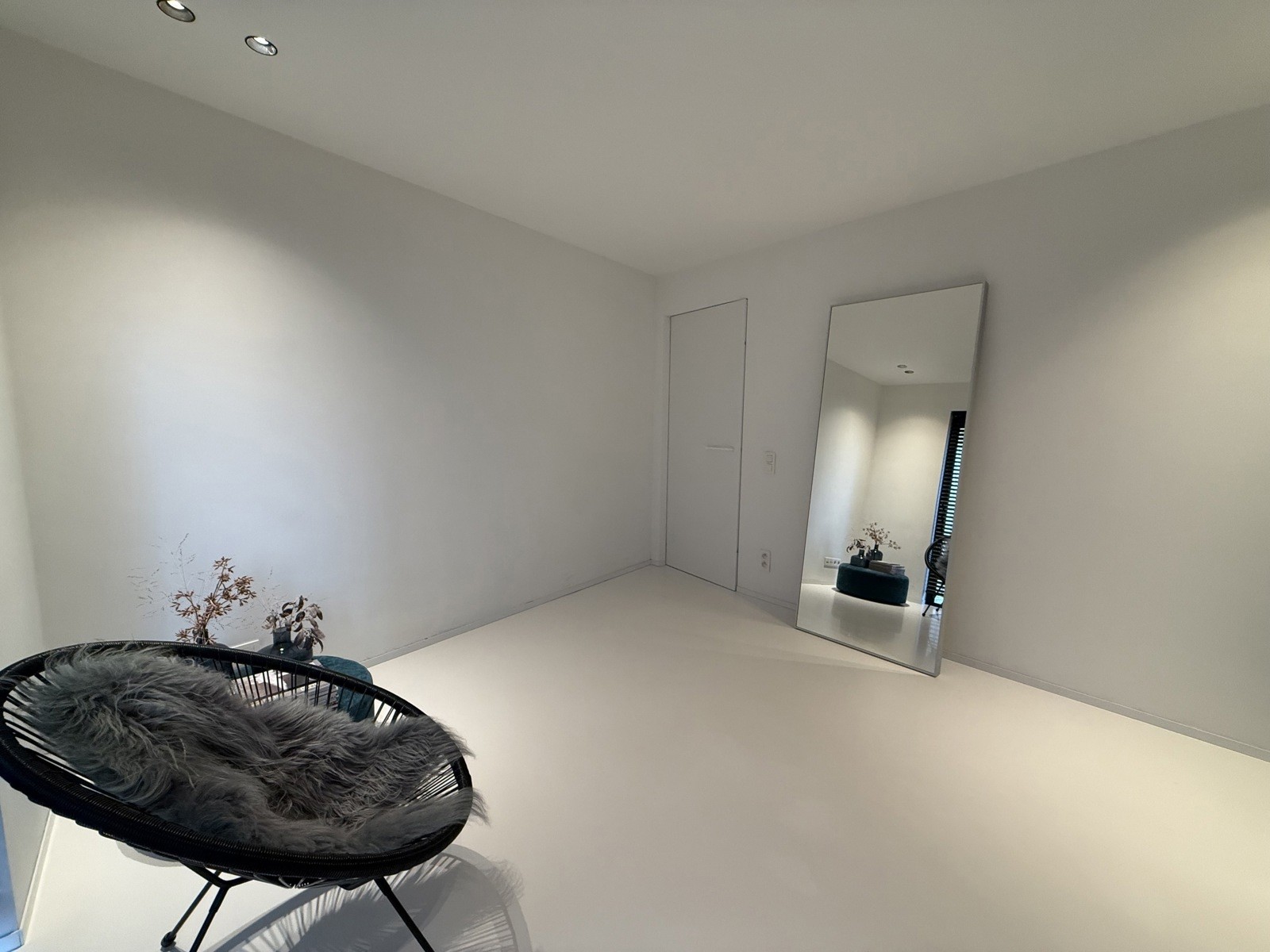 - Witte gietvloer doorheen het volledige appartement