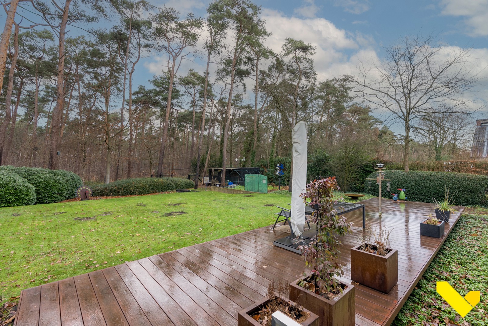 De villa is omgeven door een zonnige, privatieve tuin met ruim terras. En het beschikt over een patio waar het heerlijk vertoeven is in alle rust. De groene omgeving en de ruime percelen in de buurt garanderen privacy en woonkwaliteit.