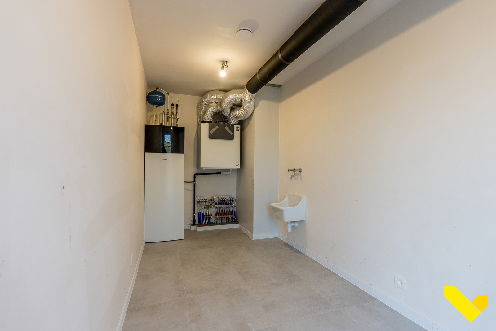 Aansluitend vindt u een grote praktische berging met ruimte voor wasmachine en droogkast. Grote raampartijen in de leefruimte zorgen voor een mooie connectie met de volledig omheinde tuin, voorzien van een tuinberging, en het zonnige terras. Hier kan u in alle rust genieten. Op de 1e verdieping bevinden zich nog een nachthal met apart toilet, een badkamer met bad, inloopdouche en dubbele lavabo, 3 slaapkamers en bureau - kan ook perfect dienst doen als 4de slaapkamer.